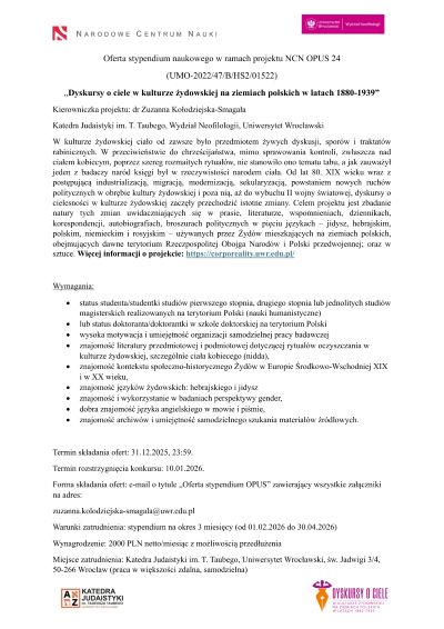 18 grudnia 2024 r. o 1930 dr Zuzanna Kołodziejska-Smagała będzie mówić o częściowych efektach projektu na 56th Annual Conference of the Association for Jewish Studies.